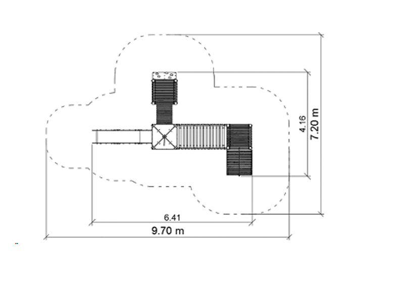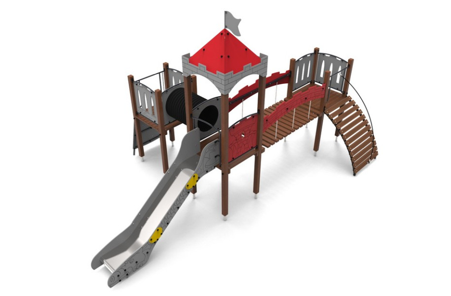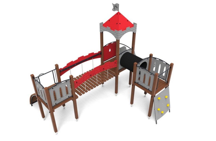 Spännande lekställning med torn, broar och tunnel. Här finns många olika lekmoment som alla utmanar på olika sätt vilket gör lekställningen uppskattad på en skolgård eller på en bostadsgård.